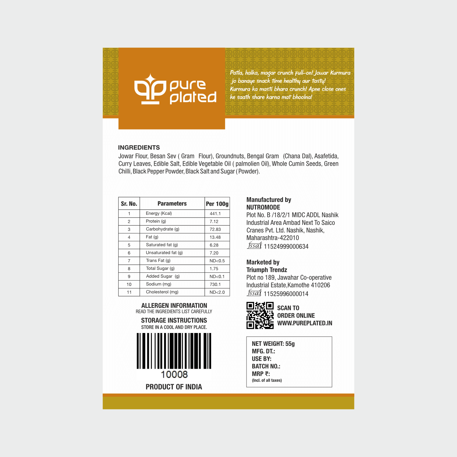 Rediscover the joy of traditional Indian snacking with our Healthy Jowar Kurmura Online, inspired by the bold and vibrant taste of Fatafat Bhel. Made from 100% pure jowar flour, this crunchy and airy delight brings you all the fun of bhel in a cleaner, healthier way. Each handful is a flavour explosion of sweet, tangy and spicy notes, crafted with real ingredients like tamarind, dry mango, jaggery and green chilli. Light on calories yet rich in fibre, jowar helps improve digestion and keeps you feeling full for longer, making this snack perfect for mindful munching. The mix of gram flour sev, roasted groundnuts and Bengal gram adds a dose of plant protein and crunch, while the natural spices and dehydrated vegetables ensure authentic Indian flavour in every bite. Whether it’s tea time, office hours or late-night cravings, Pure Plated’s Healthy Jowar Kurmura gives you a guilt-free way to enjoy your favourite bhel anytime. Order Healthy Jowar Kurmura Online today and experience a classic street-style snack reimagined for modern, health-conscious living.