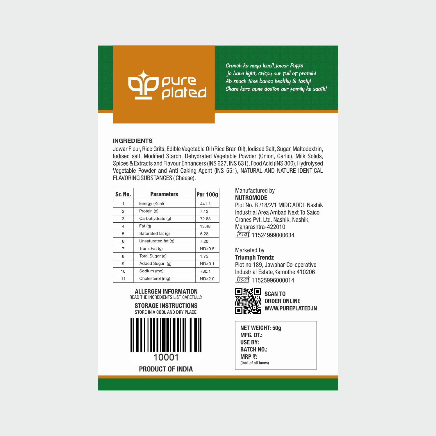 Packed with protein and fiber, our Creamy Cheese Jowar Puffs offer a gluten-free snacking option that supports heart health and digestion. Jowar is a great source of antioxidants, making these puffs a nutritious choice for cheese lovers.